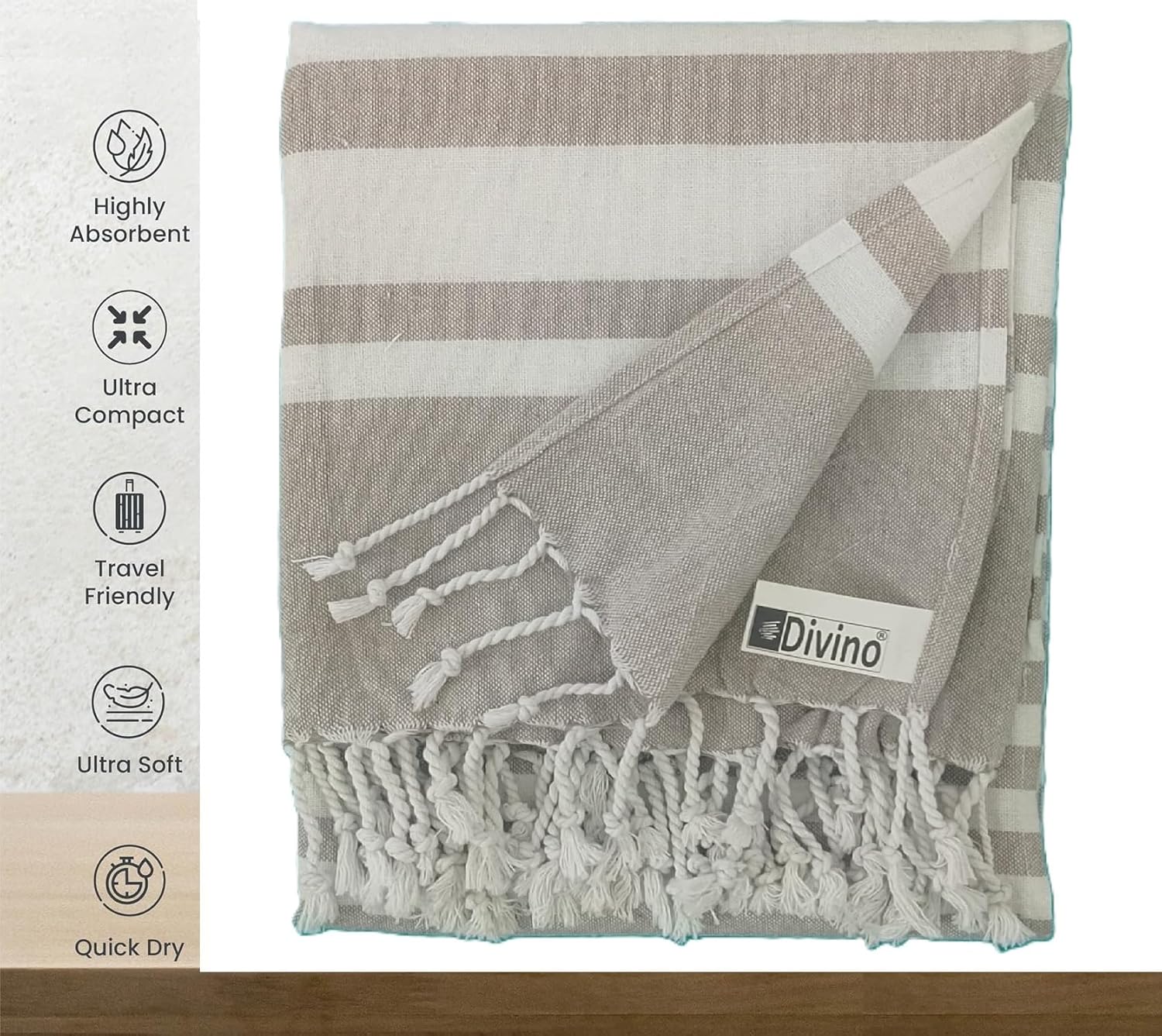 - MULTI-PURPOSE TOWEL: Divino Bamboo towels feel softer and more elegant than regular towels. Can be used to wrap up after a regular bath, bubble bath, swim or while taking a steam bath, camping, water park & at the beach. Bamboo fabric has best in Class Absorbency and Comfort, and can also be used as a hair towel. Can be used as Bath Towel, Beach Towel, Shawl, Car seat cover, Throw, picnic towel, sarong, travel blanket, etc
